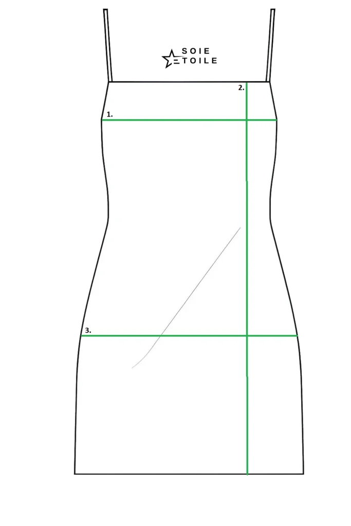 Mesurez depuis le dessous de l’aisselle, en suivant la ligne verticale jusqu’à l’ourlet