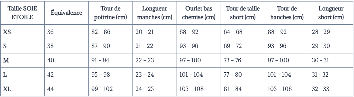 Chez SOIE ETOILE, chaque pièce est confectionnée à la commande, rien que pour vous. Si vous souhaitez apporter une retouche personnelle (longueur des manches, ajustement de la taille, ou tout autre détail), n’hésitez pas à nous l’indiquer en ajoutant une note à votre commande au moment du paiement. Nous serons ravis de l’adapter à vos envies.